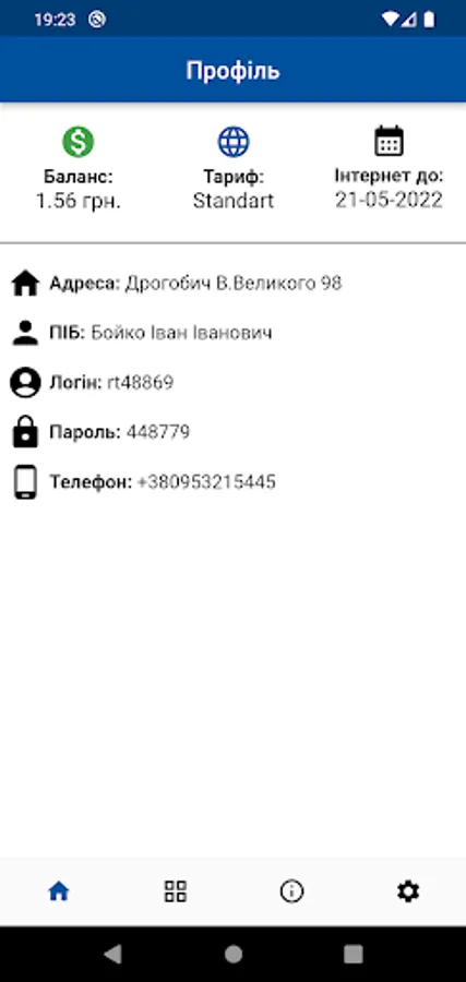 - View your account information. Namely: (Balance. Tariff, Internet end date, Login, Password, etc.)