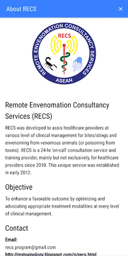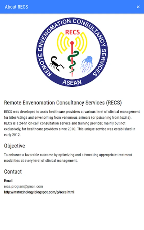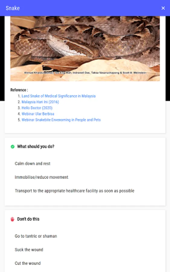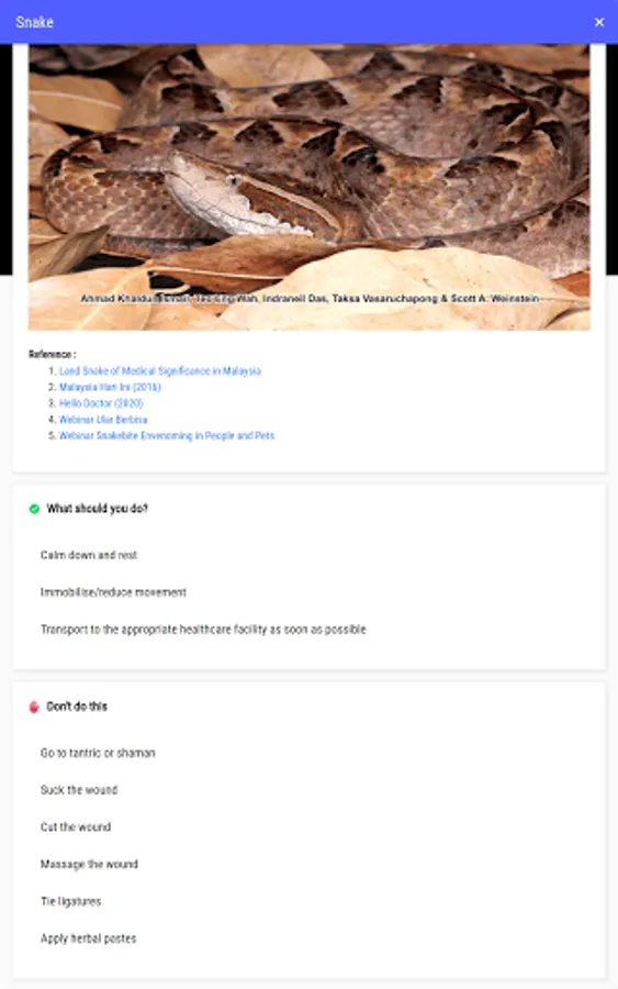 MyRECS provide information to assist for the general public on Malaysian venomous creatures.