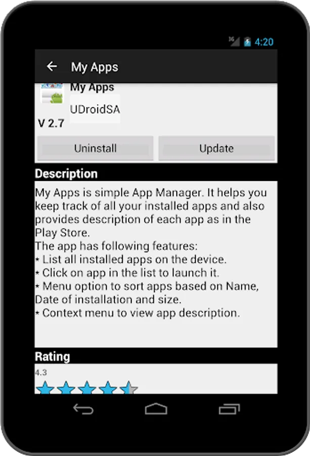 My Apps is simple App Manager. It helps you keep track of all your installed apps.