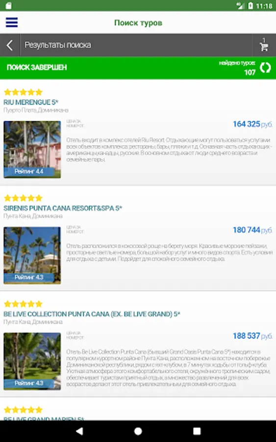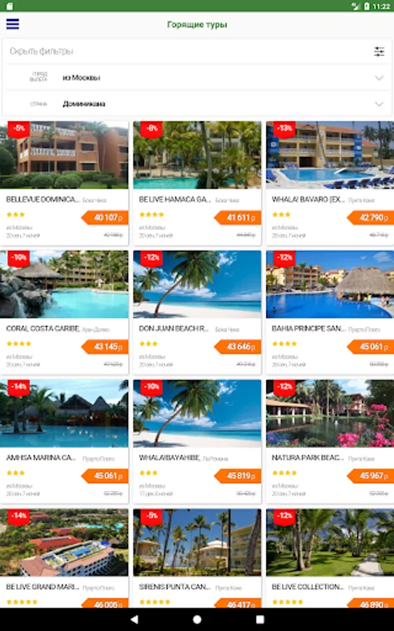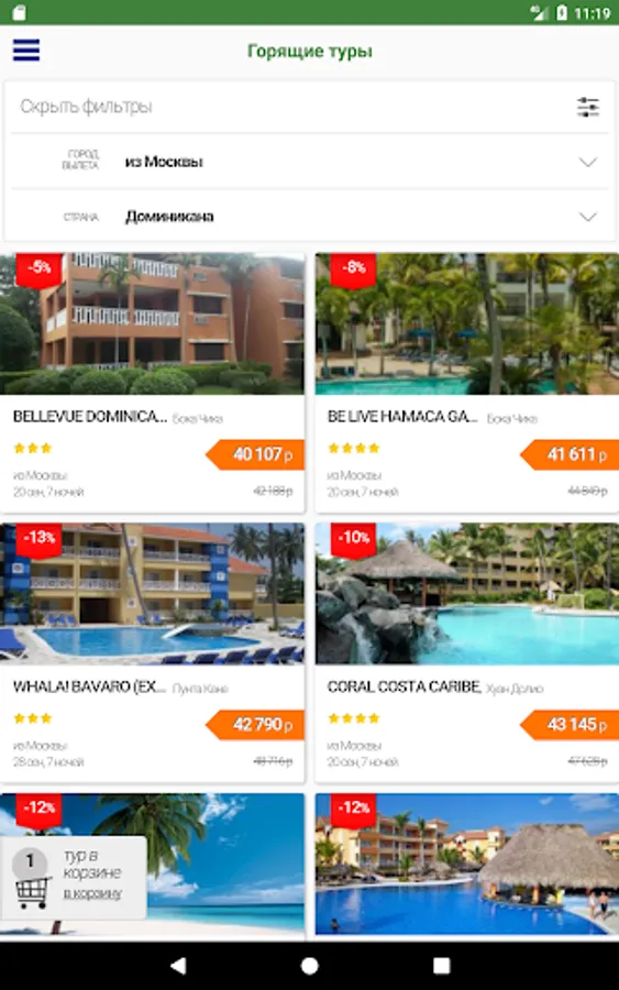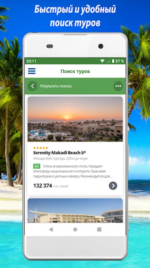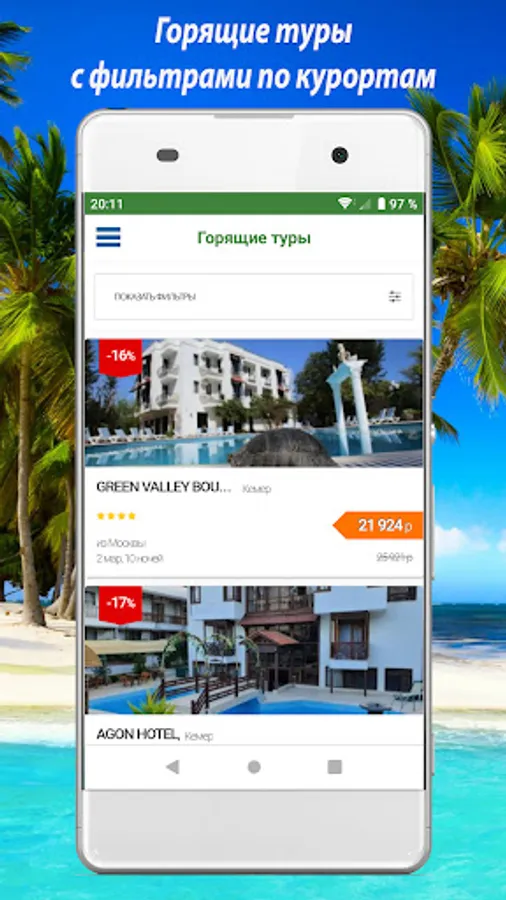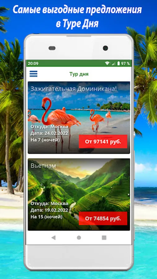 ▪ Inside the application, from time to time, unique offers appear, using which you can purchase last-minute trips to hot countries at reduced prices;