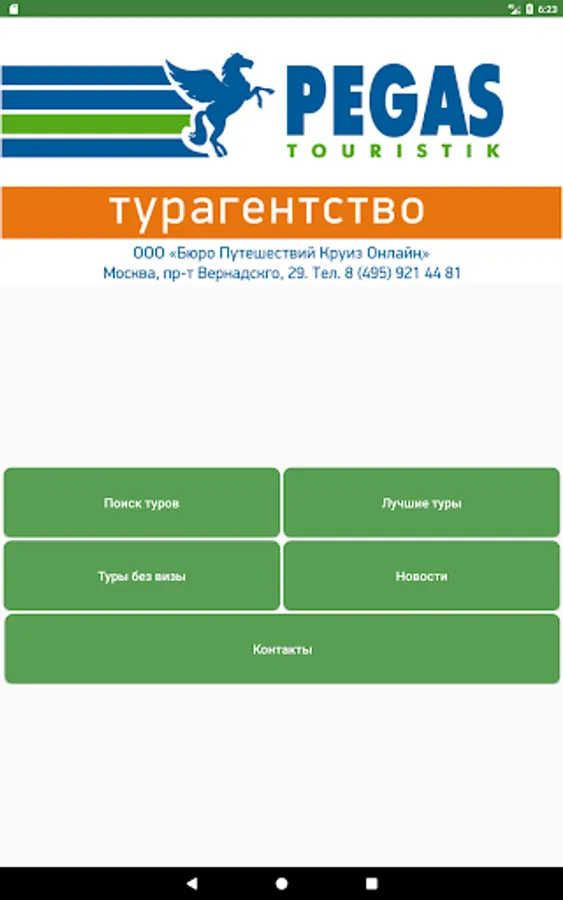 Application "Travel agency PEGAS Touristik" is presented online by the authorized travel agency PEGAS Touristik, Travel Bureau Cruise Online LLC Moscow, Vernadskogo Ave., 29, tel.: 8 (495) 921-44-81 online.