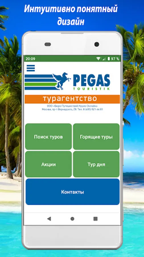 Traveling with the travel operator PEGAS Touristik and the application developed with his direct participation is always safe and exciting. The company has been operating in the Russian tourism market for over 25 years and is considered one of the best in its business. The tour operator never has dissatisfied customers - on the contrary, most of them are permanent.