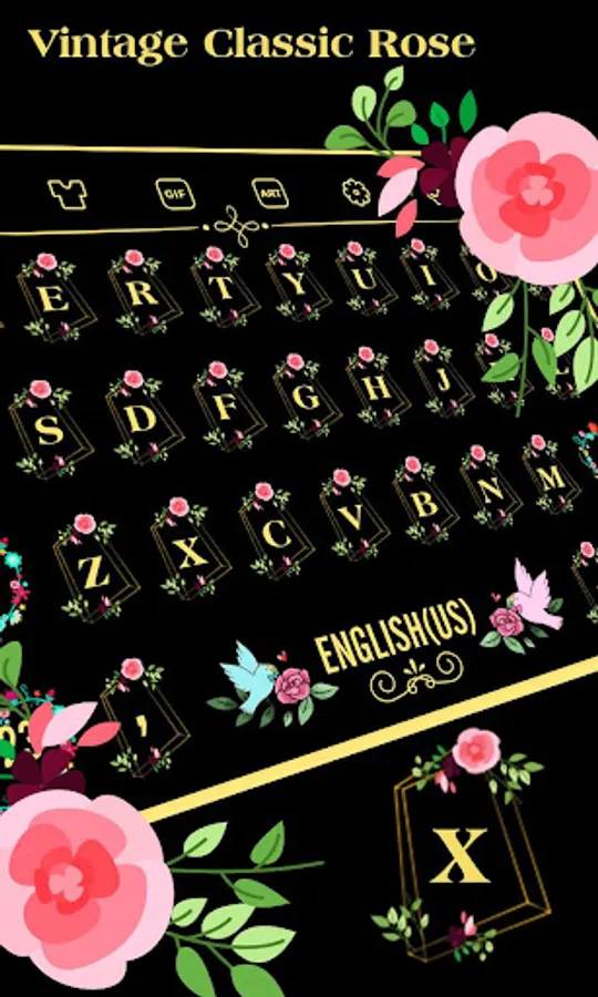 This beautiful keyboard is designed for people who like Vintage Classic Rose Keyboard Themes. Vintage Classic Rose Keyboard is designed to give you a faster and smoother mobile keyboard experience. Download this Vintage Classic Rose Keyboardand type more efficiently than ever.