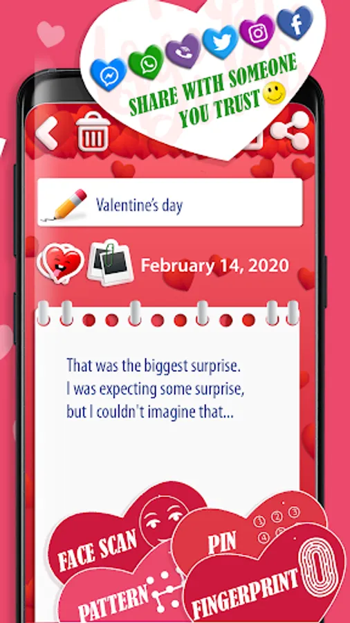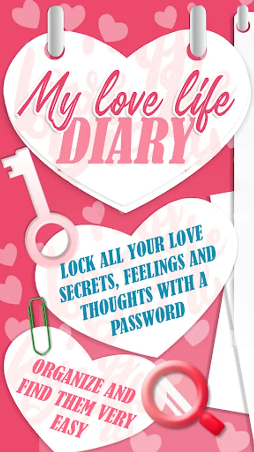 Keep your secrets safe with this โsecret diary with lock and keyโ! Protect your deepest thoughts by writing them down in this โsecret love diary with passwordโ. Sometimes you cannot trust even your BFF but you can always rely on this lockable love secret diary for girls. So what are you waiting for? Download ๐ My Love Life Secret Diary With Lock ๐ and start pouring your heart out! Be sure that your high school love secrets are safe with this journal app with password. This โpersonal diary with lockโ will become your most trustworthy secret keeper. Share your hidden feelings, ideas and dreams with โmy secret diary with lock and photoโ. Write about your be my Valentine story in this secret crush diary and relive your most exciting moments! This โlove diary with lock password for girlsโ will certainly be your best confidante. Hurry up and get this journal notebook with lock free and keep your secrets locked up!