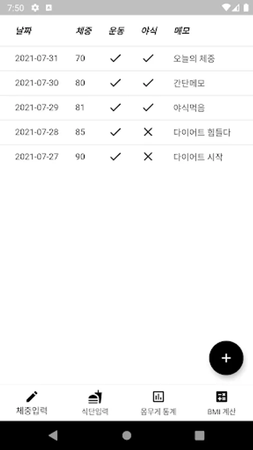 It is a memo app that allows you to record changes in weight while dieting, and to record the foods you ate for breakfast, lunch, dinner, and snacks.