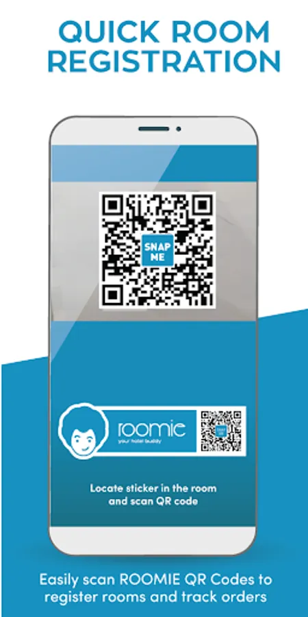 Easily scan QR codes to register hotel rooms into your ROOMIE administrative system, to complete the ROOMIE app setup.