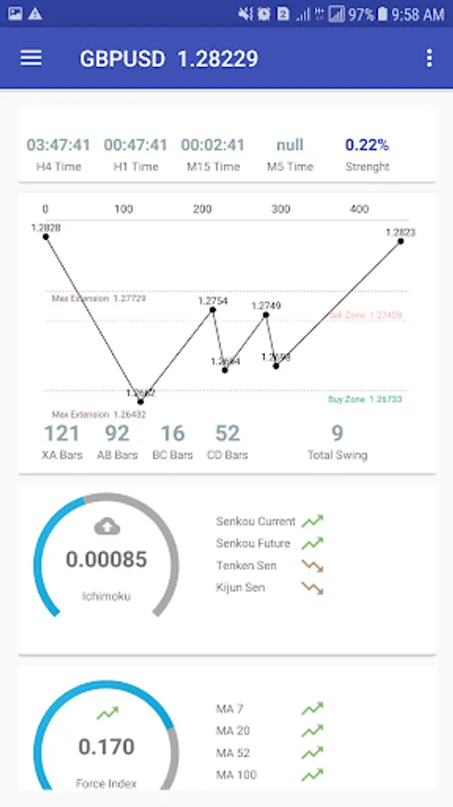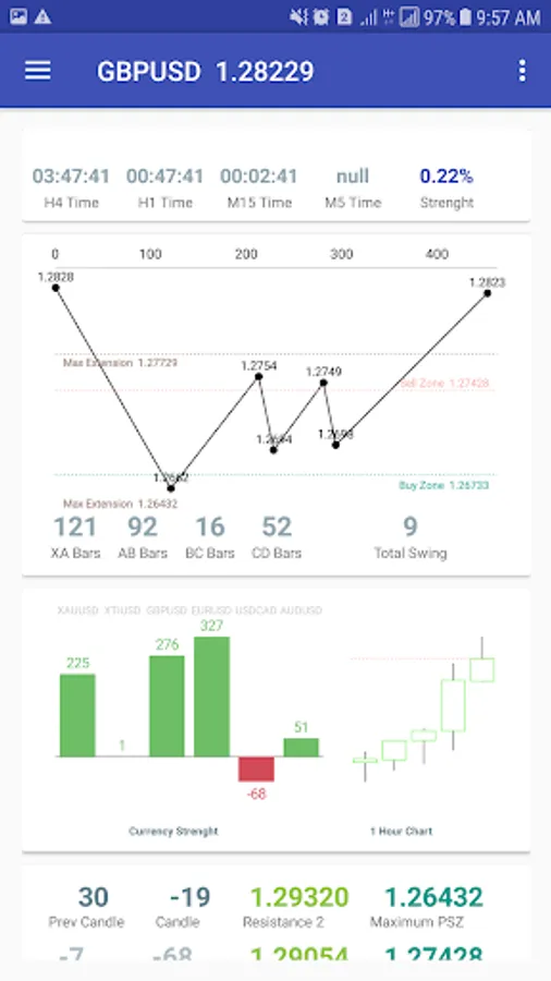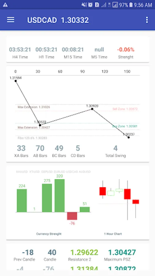 1. Real time 1 Hour focused Candlesticks for supported pairs: XBRUSD (Brent Oil) , XTIUSD (Brent Oil), USDJPY, GBPJPY, EURUSD, GBPUSD, AUDUSD, USDCAD and XAUUSD (Gold).