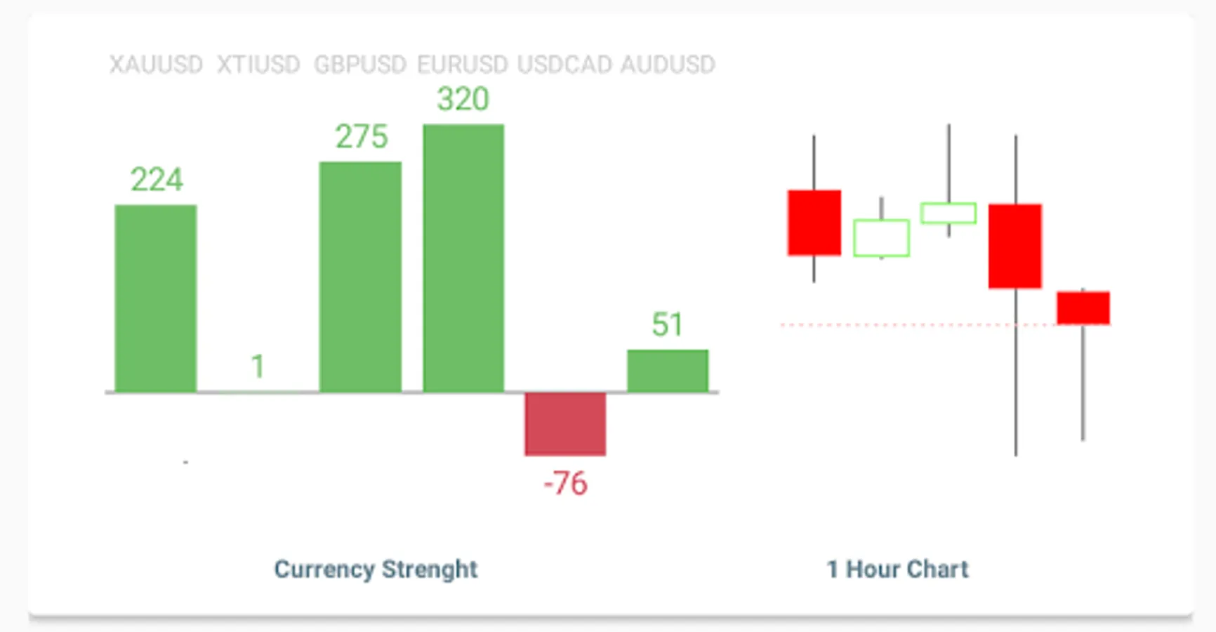 6. Realtime currencies strenght with daily pips along with comparison side by side.