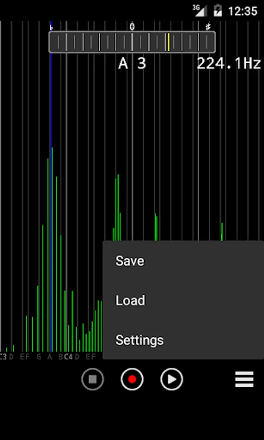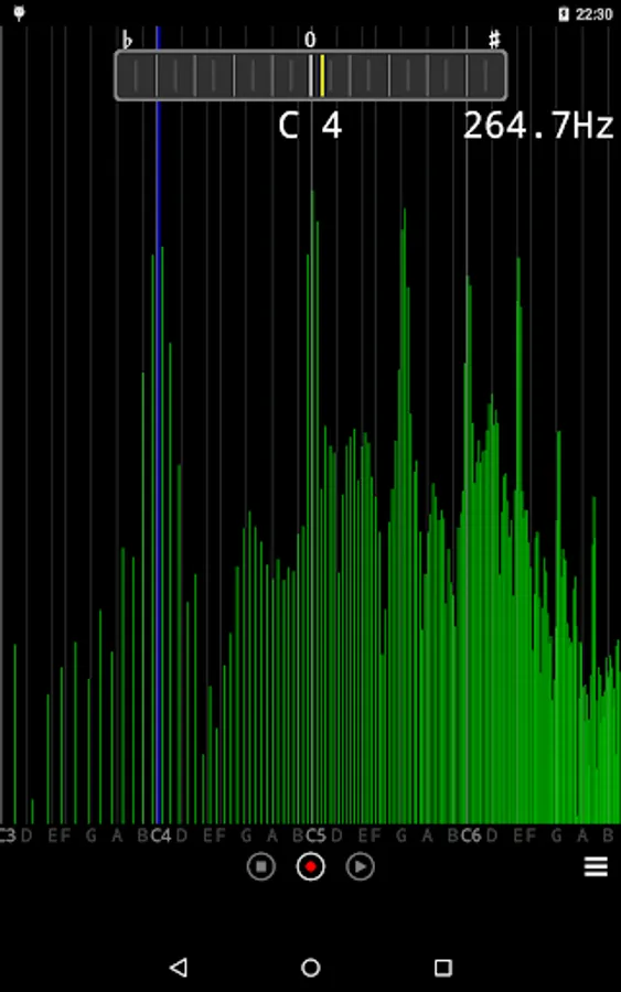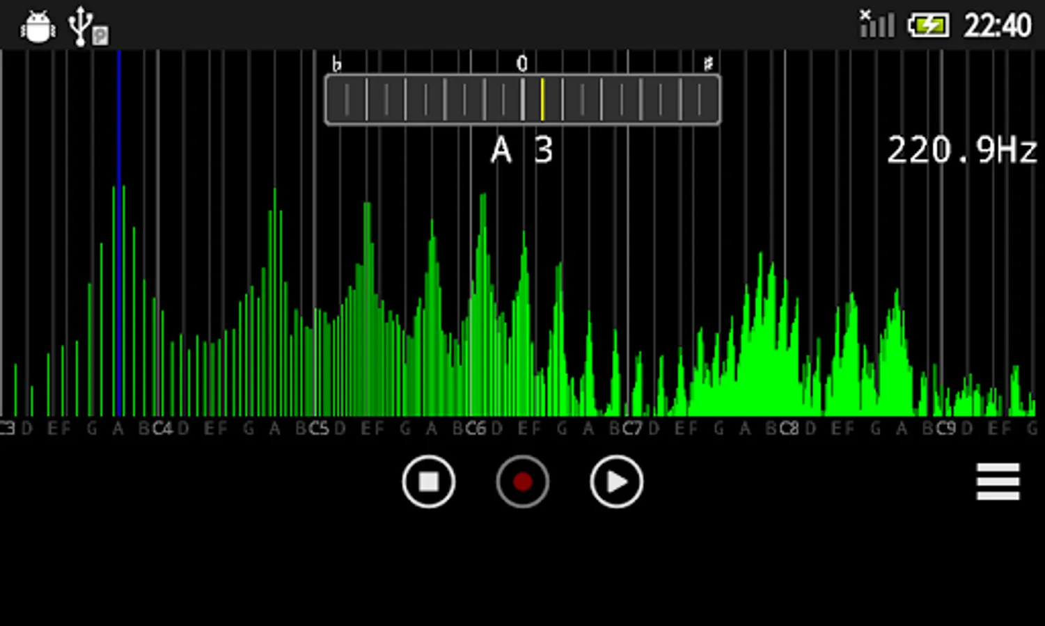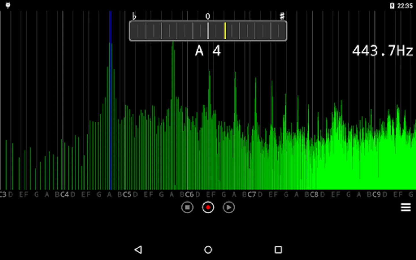 Moreover, value (Hz) of the pitch and the music scale name are displayed in the top of the screen.