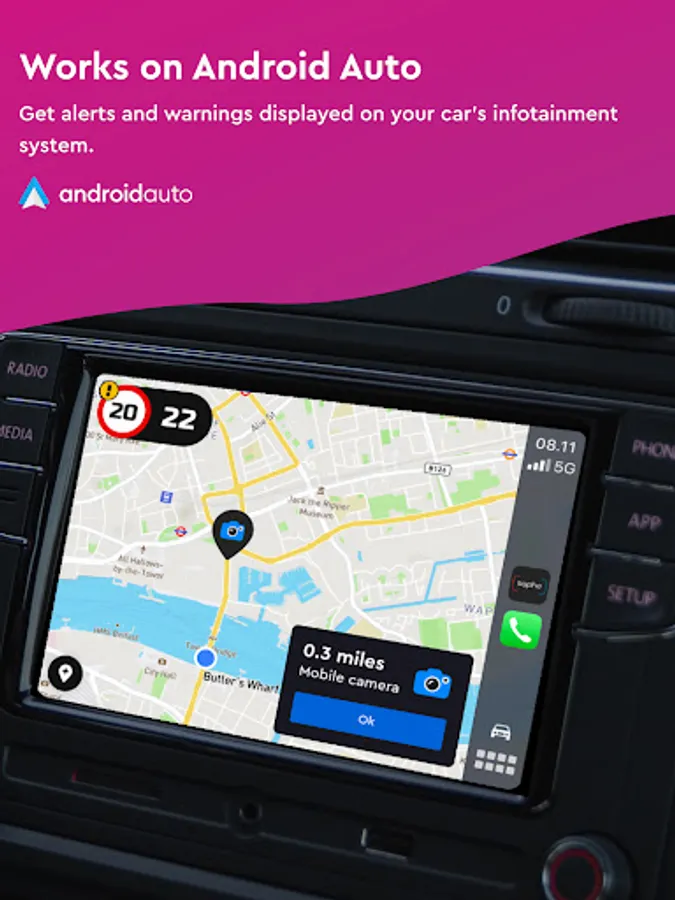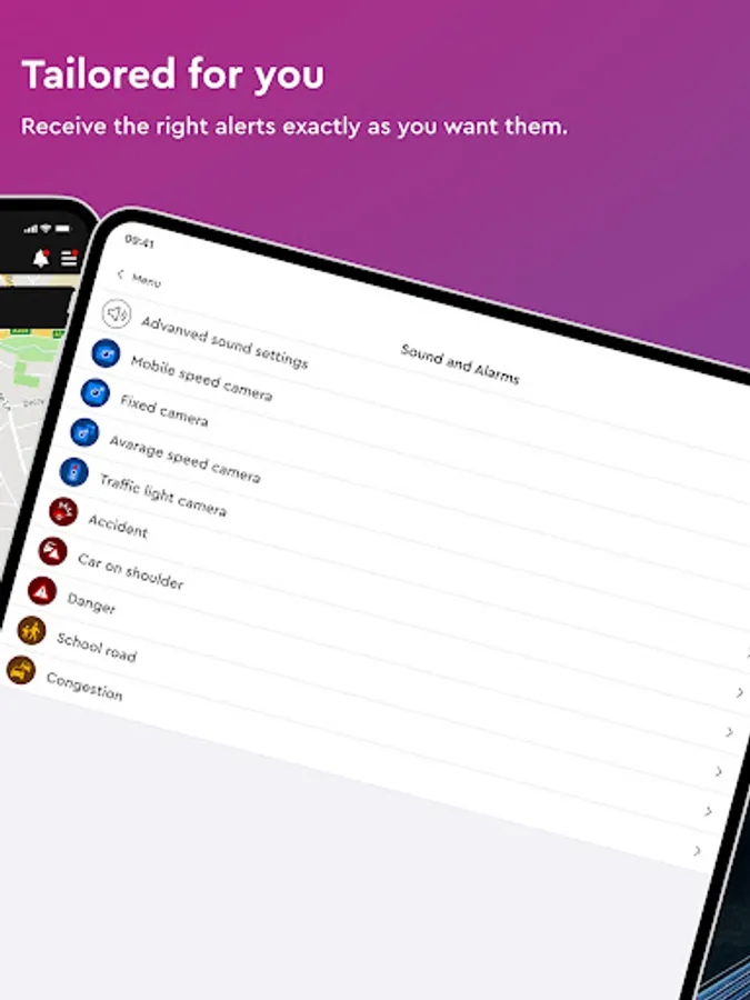 • Accurate alerts about speed cameras, accidents and dangers on the road.