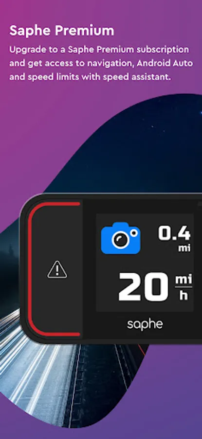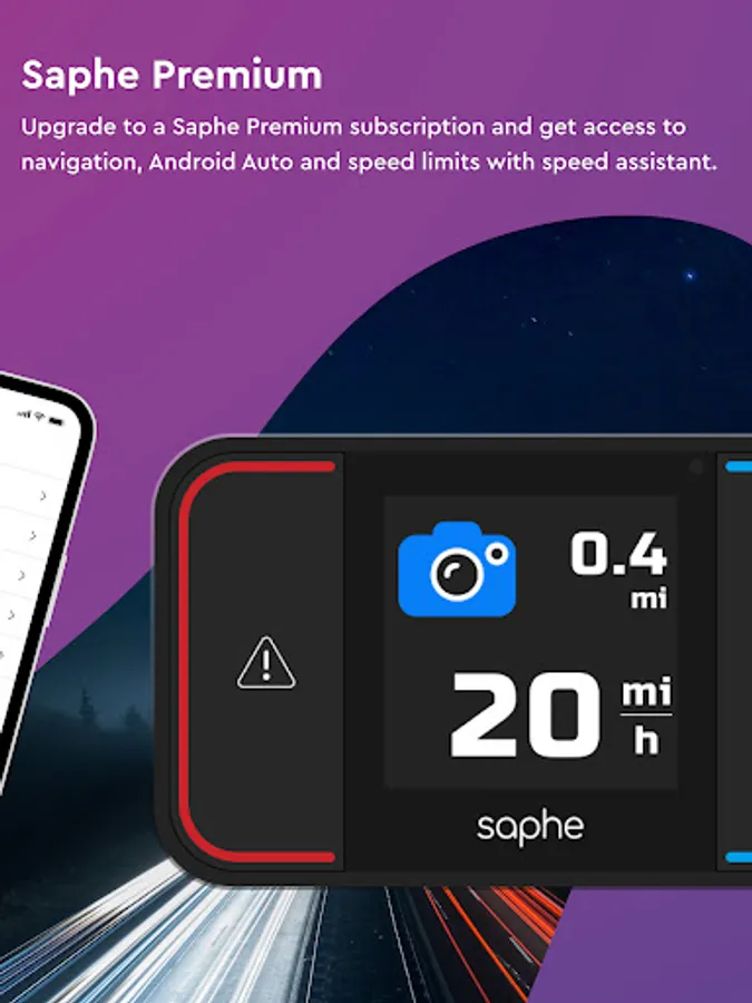At the same time, your subscription ensures that you will continue to receive the latest updates and features. The new Saphe Drive Pro traffic alert requires a paid subscription to Saphe Premium.