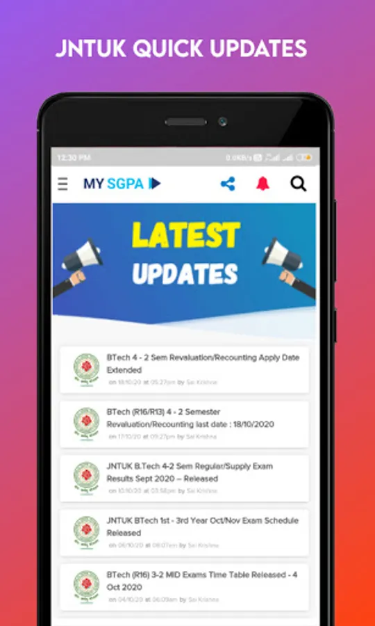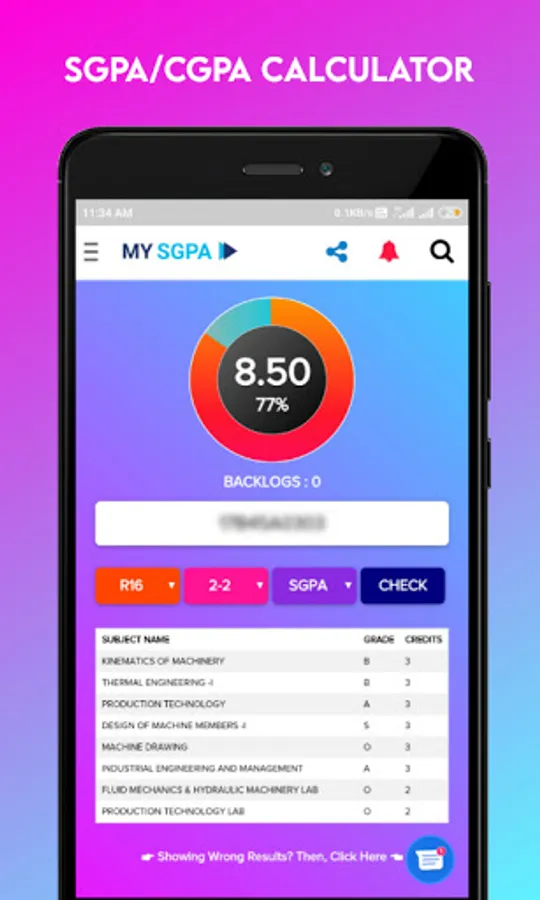 If you are an BTech student of JNTUK affiliated colleges under R16 or R19 regulations, then this app will help you so much to check your results of each semester and SGPA/CGPA score directly without asking any subject names, grades, credits etc. You just give your "Hall Ticket No", "Regulation" and "Semster" and then hit "Check" button to generate your result with in seconds.