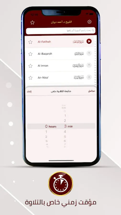 - Ability to set the Timer for the recitation to stop after a specified time.