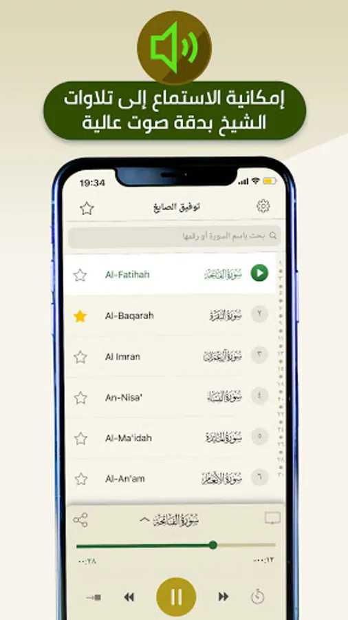 Through the application, you can listen to the Sheikh's recitation without the need to connect to the Internet. It has the following characteristics: