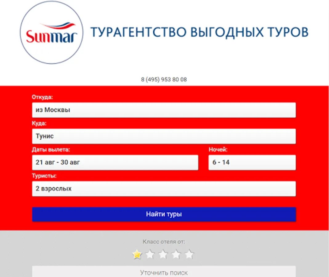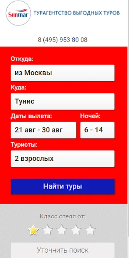 Simple and clear search of tours, turkidki and special offers tour operators, convenient filters for the selection of tours.