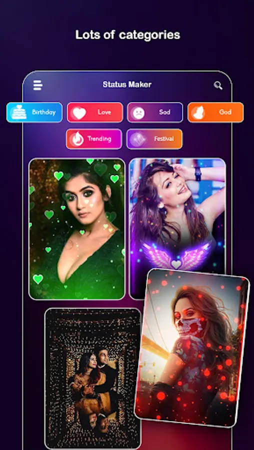 It has amazing video templates categories like festival , love , romance , funny or many more. create magical video with these type of collections.