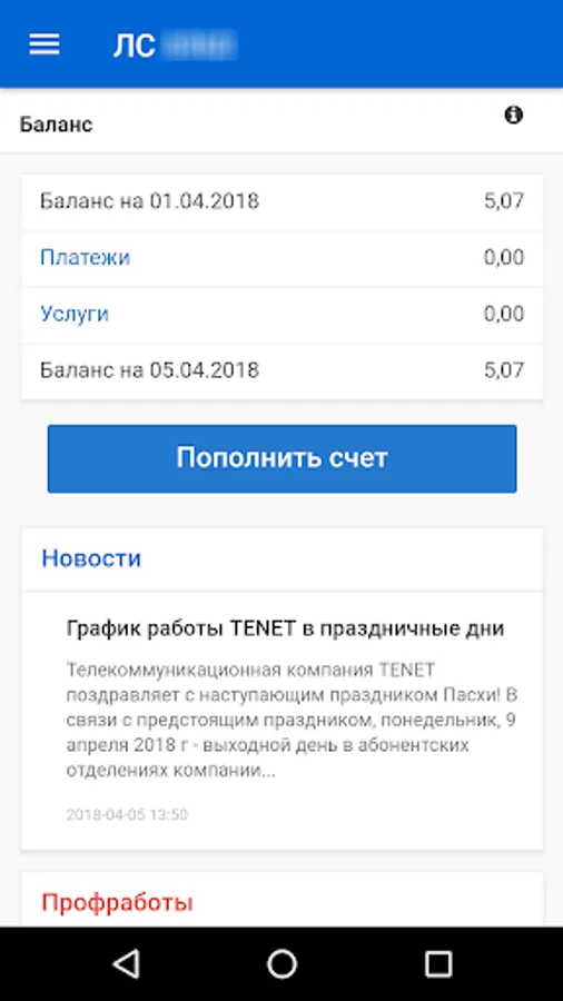 Authorization in the my TENET application is possible only with the Personal Account number and administrator password. These data are indicated on the subscriber's registration card (form No. 2) from the package of documents received upon connection.