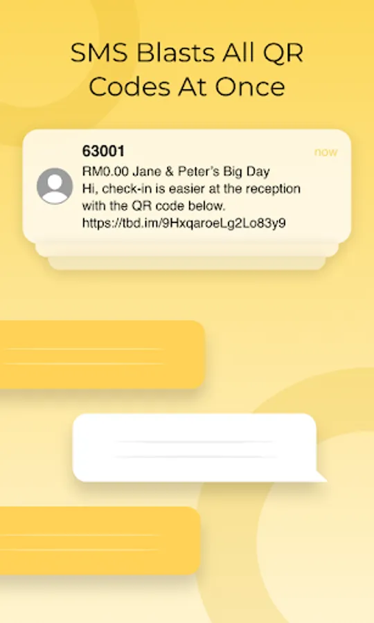 - Messaging blasting: Send customised messages and reminders to your guests to keep them informed. You can quickly communicate important information to your guests via SMS and WhatsApp, such as reminders, QR codes, and thank-you messages. (charges apply)