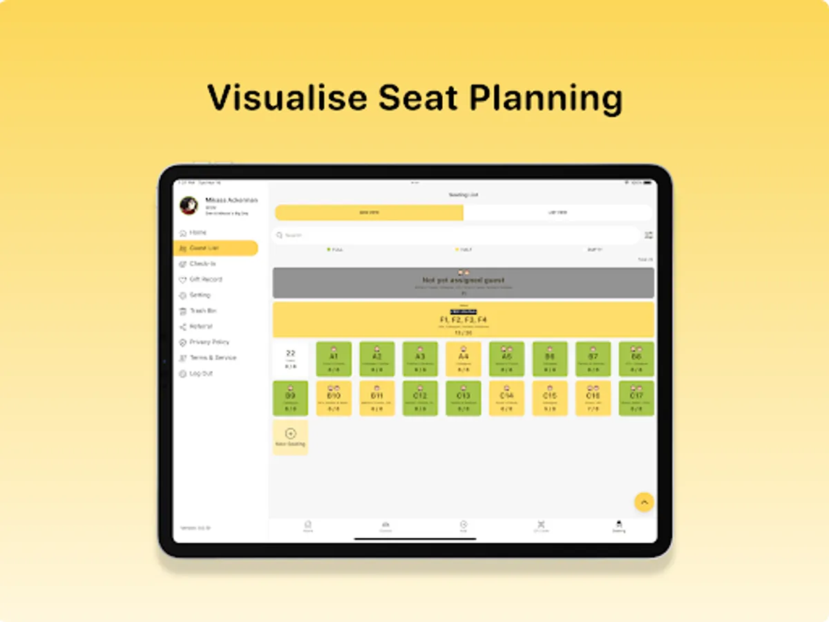 - Seating arrangement: Easily assign seats and tables for your guests. Seamlessly create and assign seating arrangements with our user-friendly table planner. Our new live check-in status update makes it easy for guests to locate their spot right after check-in.