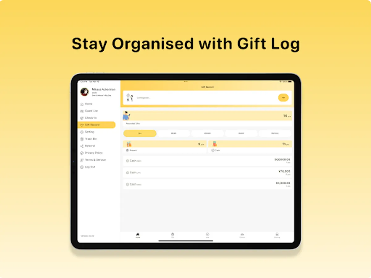 - Gift log: Keep track of all your wedding gifts and red packets with our gift log feature. You can quickly add new gifts, view gift summaries, and manage all gift-related tasks in one place.