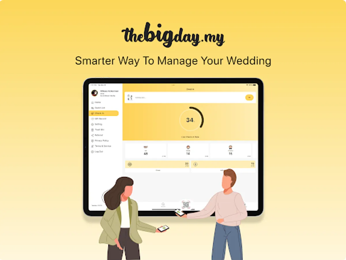 Make your wedding planning effortless and stress-free with thebigday.my – the ultimate wedding planning app. Our all-in-one platform helps you organise and manage your guest list, check-ins, seating arrangements, gifts and red packets, and more – all from the convenience of your smartphone. With our intuitive and responsive design, you can access all your wedding planning details on-the-go. Plus, our app syncs in real-time across all devices, so you can easily collaborate with your partner, wedding planner, or vendors.