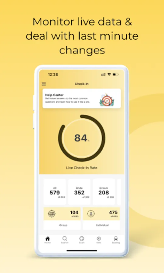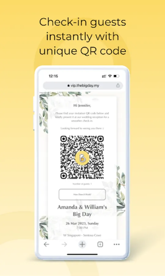Our app provides guests with a unique QR code to streamline the check-in process. With this feature, ushers can access live check-in data to determine guests’ statuses and guide them to their seats with ease. Say goodbye to the stress of manual check-ins and hello to a smooth and efficient flow on your big day.