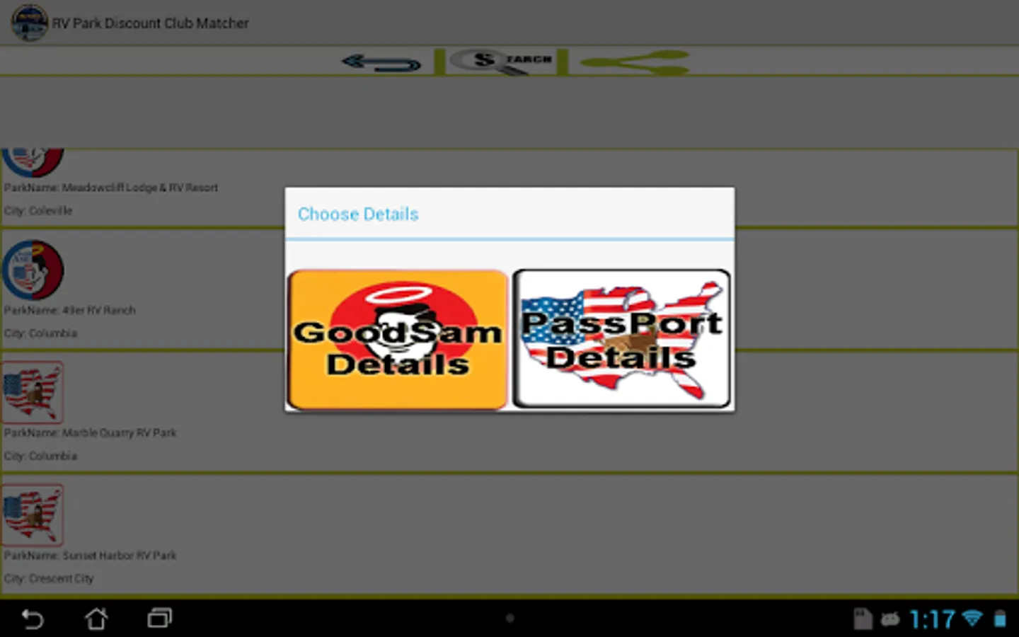Match's up RV park, discount GoodSam Club And Passport America with one another. As a avid Passport America member and full time RV'ER , I have found park's that are both GoodSam and Passport America parks are most of the time up better quality.