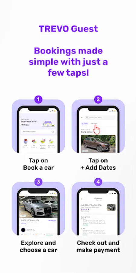 TREVO is a car sharing platform where users can book any car that fits the needs and wants for the trips they are going to, from the nearest trusted owners (hosts) in the TREVO community.