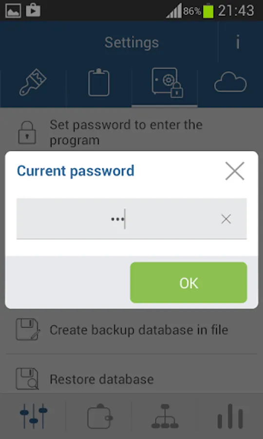 Your details will be securely saved. Daily automatic archiving will not allow you to lose data, and syncing with the cloud will save them, even if the device fails to function. You can set the app logon password, just in case your device is used by others, so you can stop worrying about your data confidentiality.