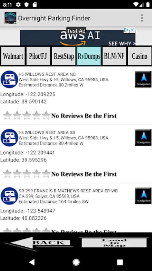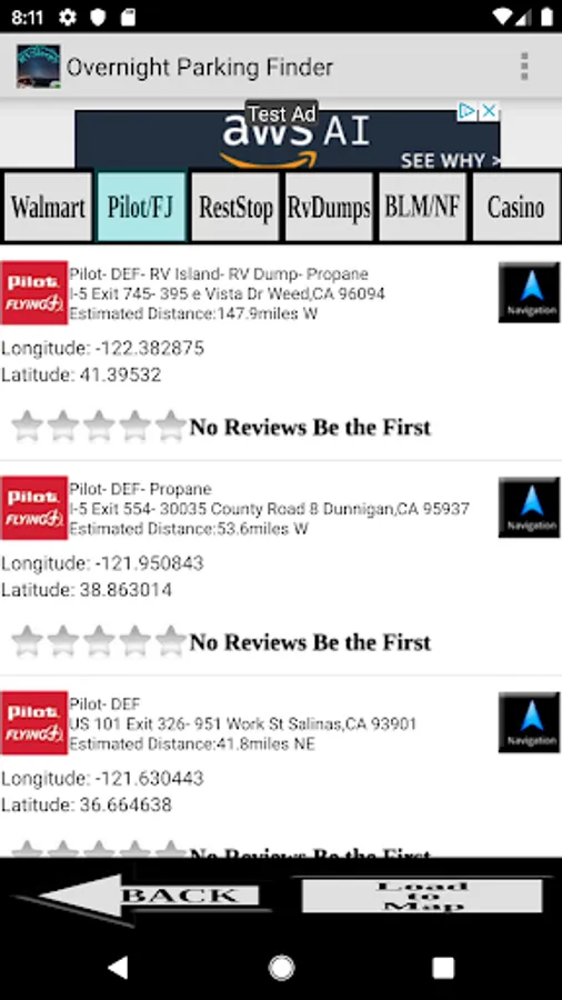 With "OverNight Parking Finder RVSleepy" app you will know which Walmart's allow overnight parking , has built in turn by turn navigator to get you there. Also has a RedBox locator that can find any redbox in the USA.We also added a pilot and flying j locator ,rest stops and now free RV dump Station Locator
