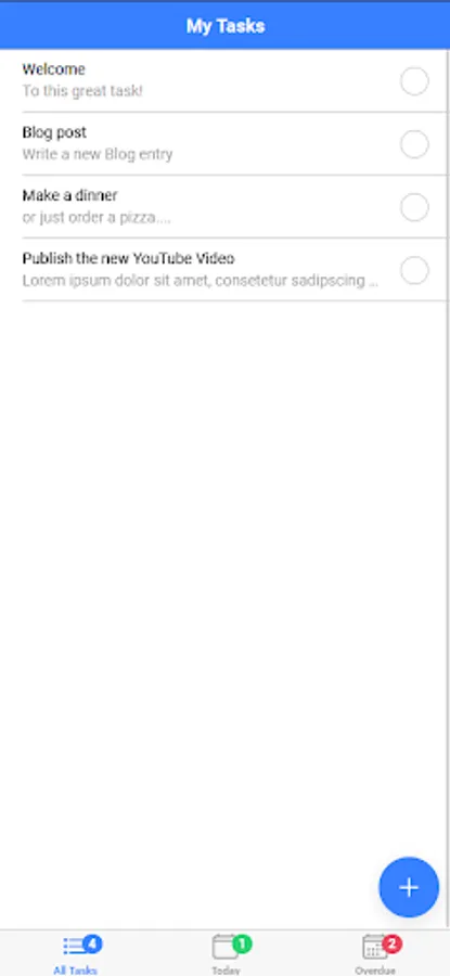All tasks are stored localy without any sync or internet connection. Your data, on your phone.