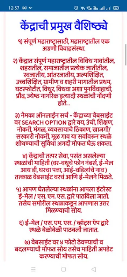 केंद्रात संपूर्ण महाराष्ट्रातील सर्वजातीय समाजातील स्थळांची मोफत नोंदणी होते.