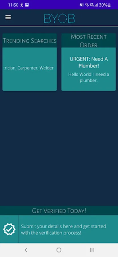 BYOB is a networking application for the unorganized sector. Users can search for nearby services or provide one.