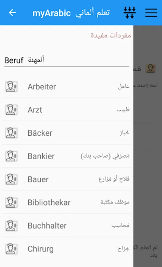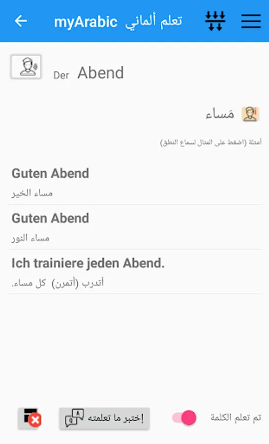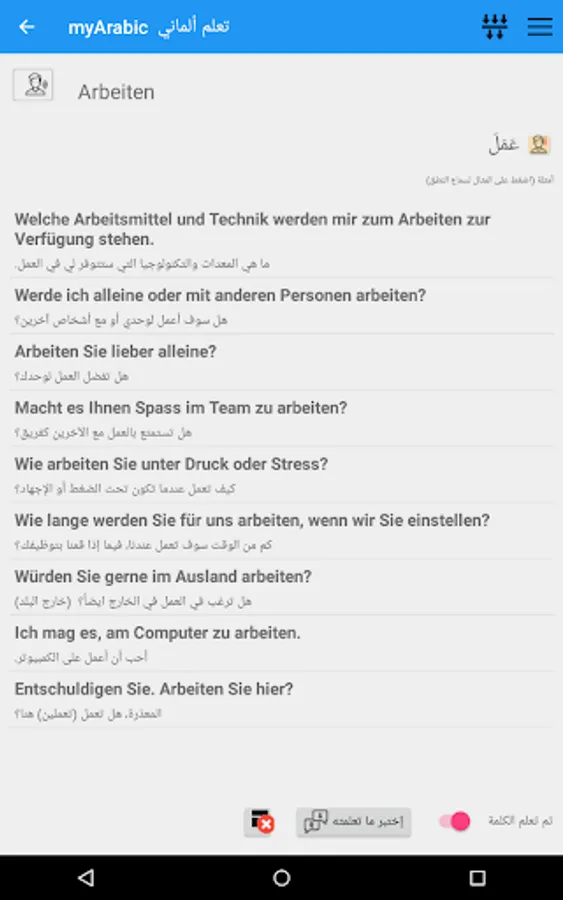 myArabic demo application will Bdzian (learn German and speak German) aims to facilitate the learning of the German language speakers and daad as a companion to the learner on mobile devices.