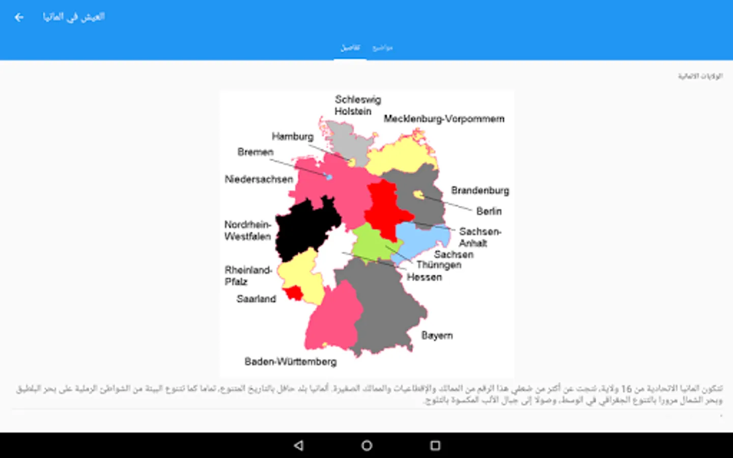 In 2015, the application of learning German as an application for Windows computers were released suppository, tens of thousands of times. Today, we are pleased to provide the application, according to many requests for devices Alandroed also to learn German to Arabic speakers.