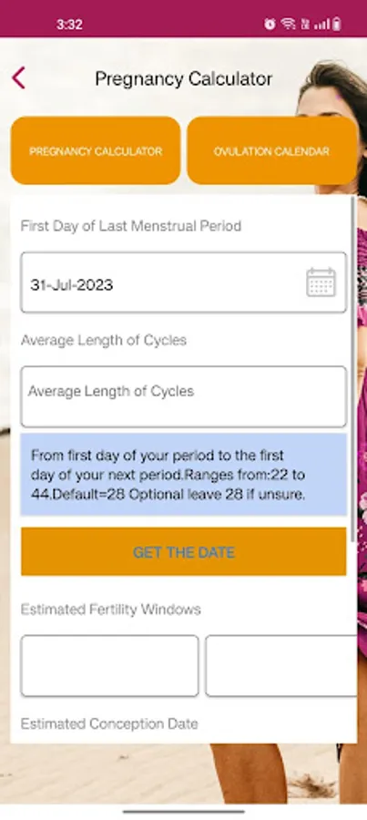 • Pregnancy Calculator to learn about the potential date when the baby would have