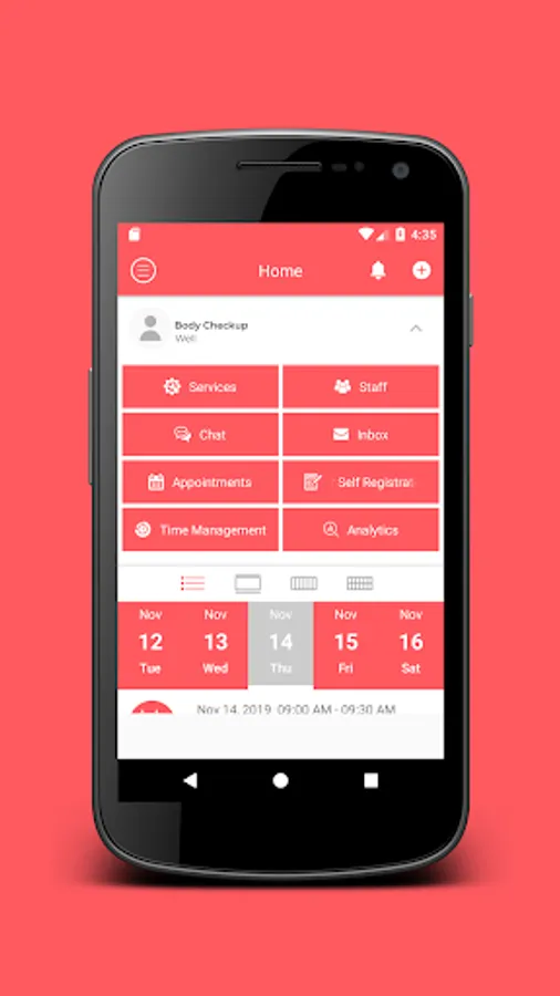 Customers can schedule appointments with service providers using Myday App. Appointments will be available in the calendar view and can be cancelled, if needed. Based on the appointment schedule, service will be provided by service provider and once appointment is complete, service provider can bill the customer. Payment can be done using cash / credit card / debit card /Pay pal