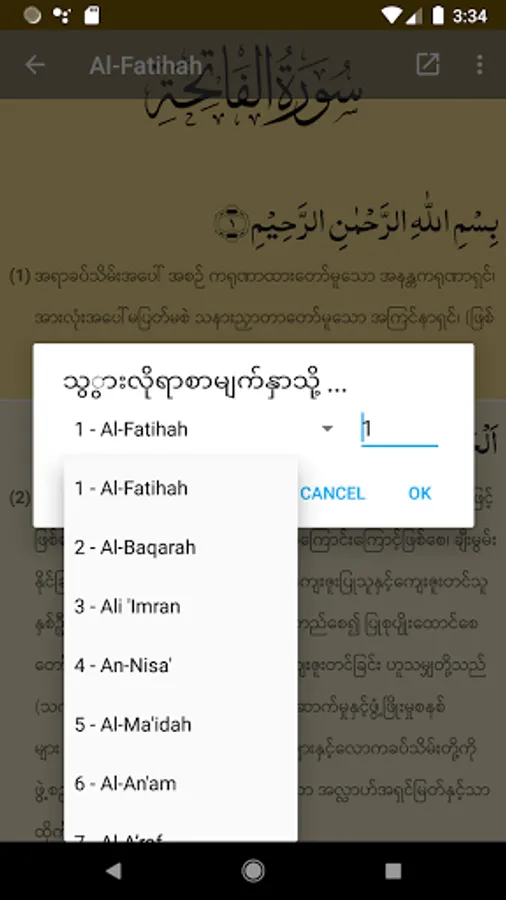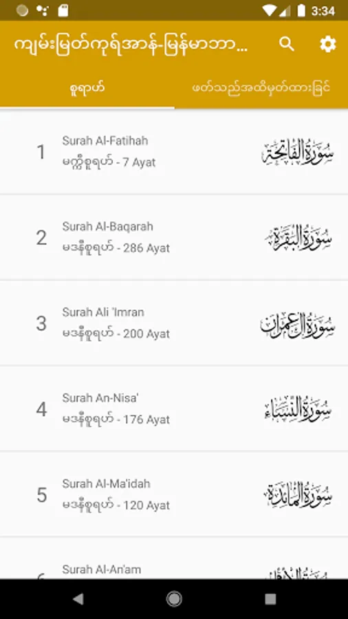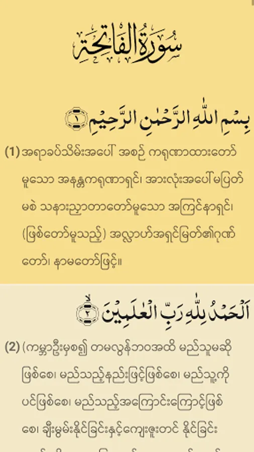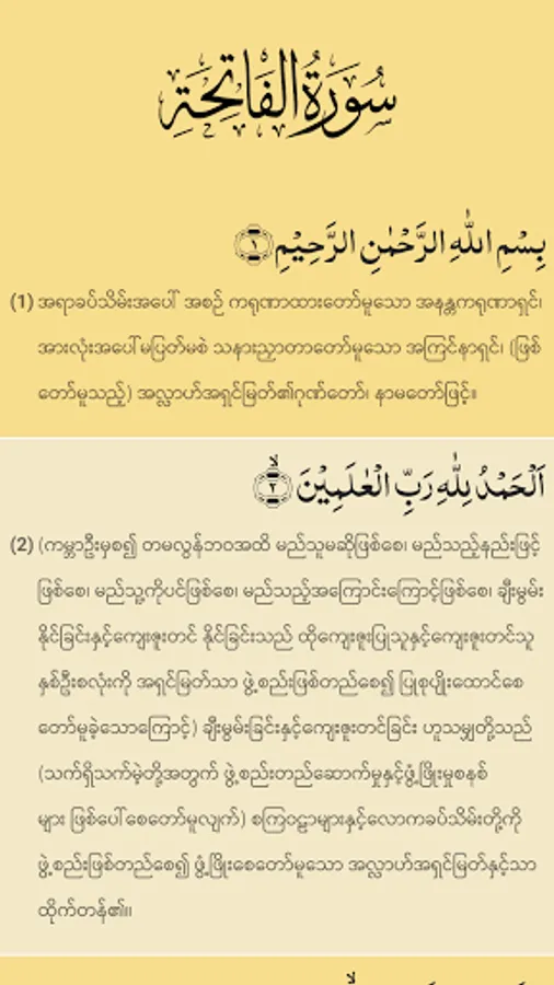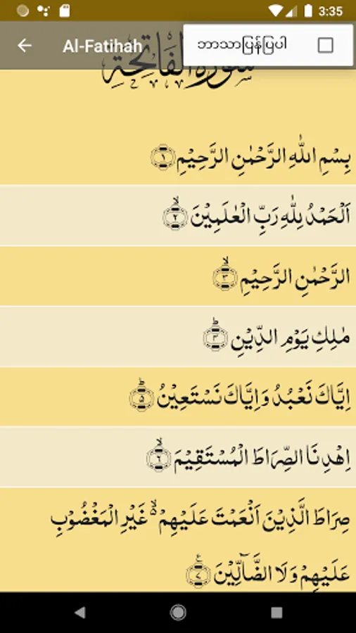 - Copy Arabic Ayah and Myanmar translation;