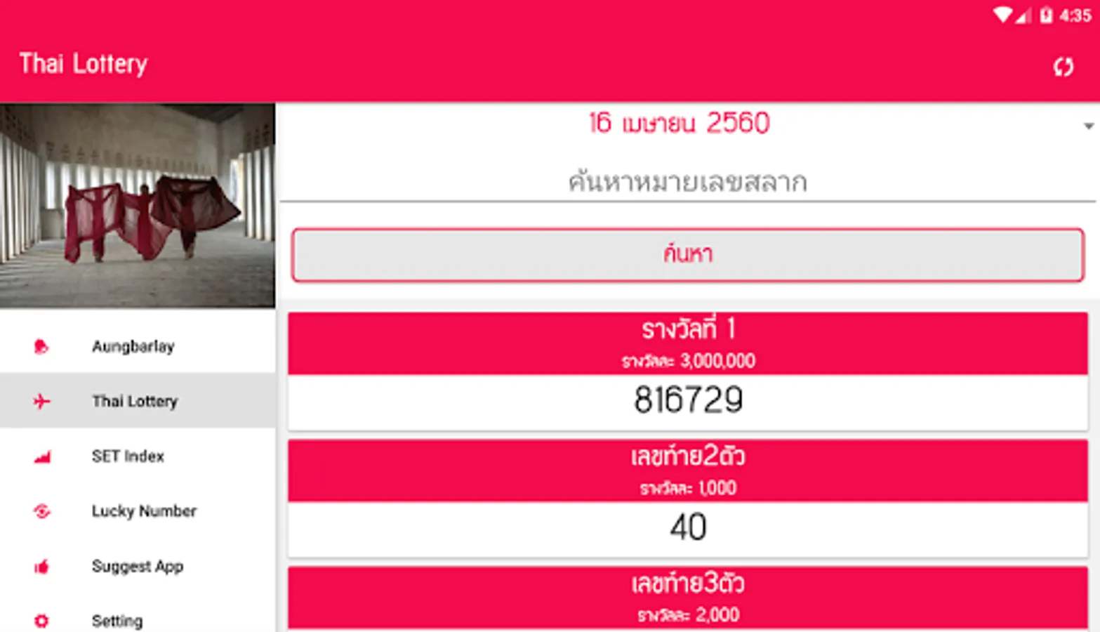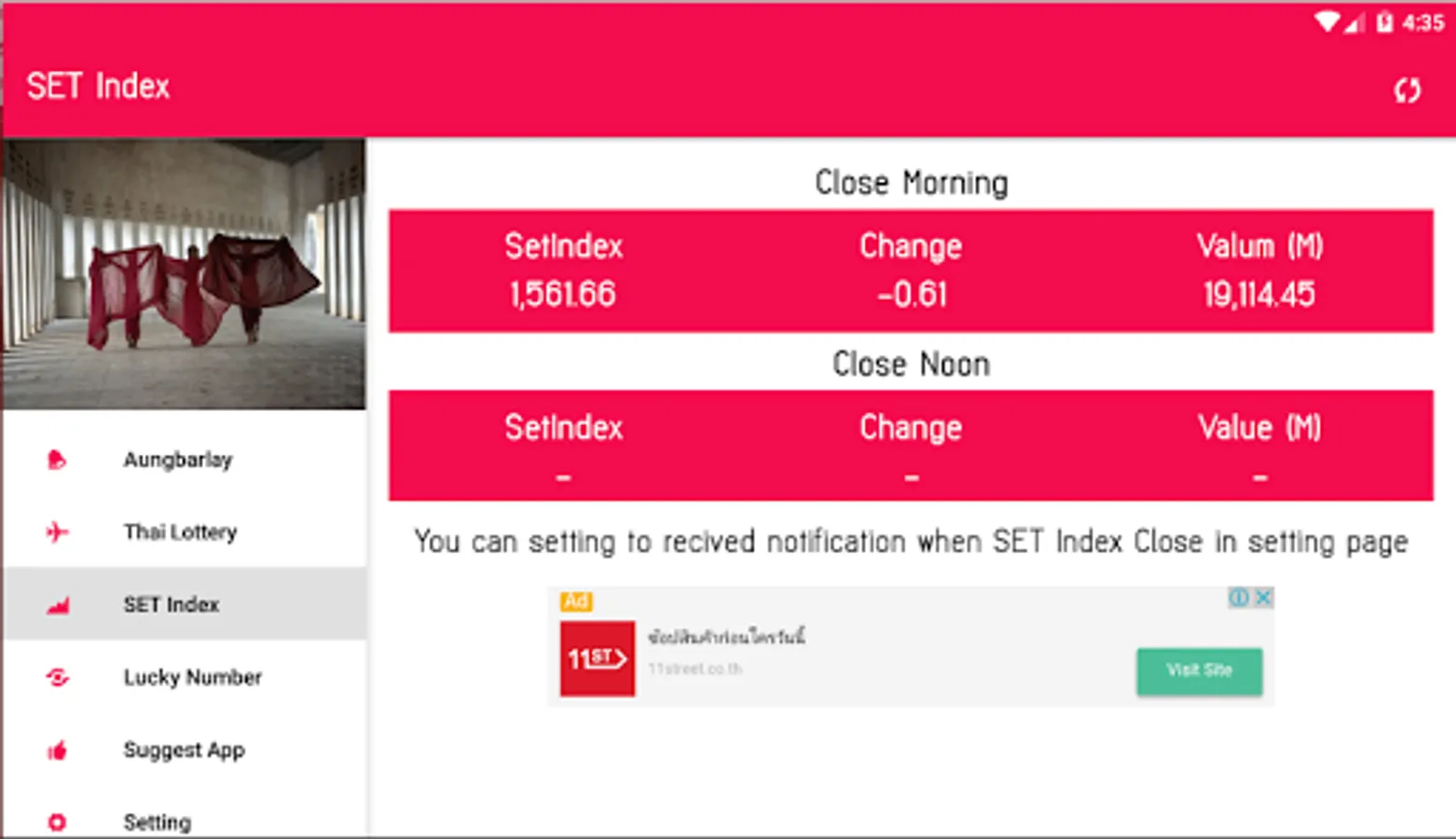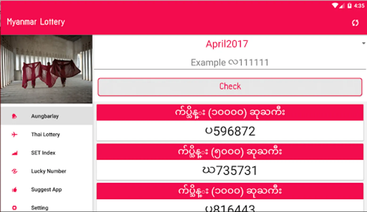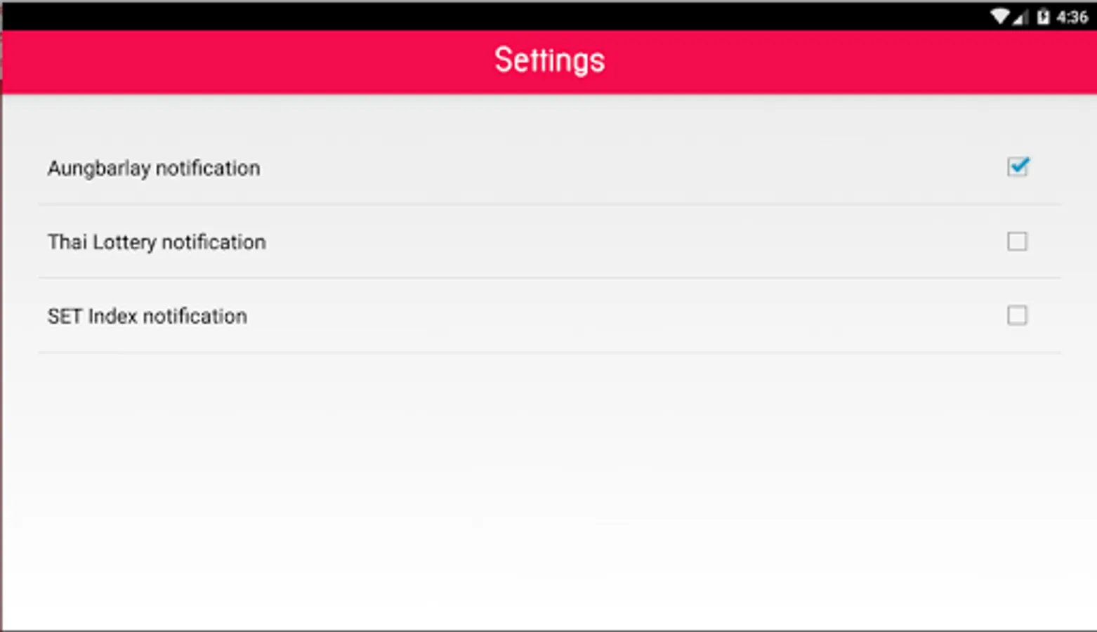 If you are a Myanmar lottery Aungbarlay fan can receive alerts from us. Moreover this application show Thai Setindex for two digit (Thai stock two digit)