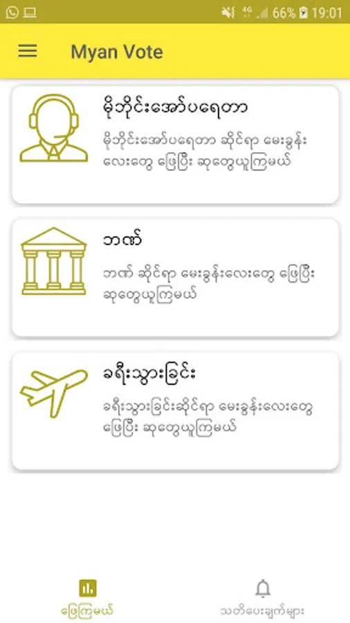 မိုဘိုင္းေအာ္ပေရတာ၊ ဘဏ္ နဲ႔ ခရီးသြားျခင္းလုပ္ငန္းအျပင္ အျခားကုန္ပစၥည္း ဝန္ေဆာင္မႈနဲ႔ သက္ဆိုင္တဲ့ ေမးခြန္းေလးေတြ ေျဖၿပီး ဆုလက္ေဆာင္ အမ်ိဳးမ်ိးကို ရယူၾကမယ္ေနာ္။
