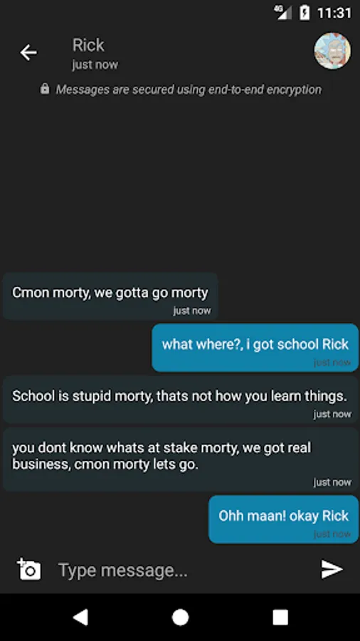 - Messages are end-to-end encrypted using Asymmetric encryption algorithm (RSA).