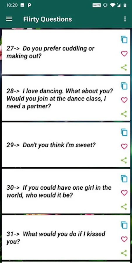 Once you are cozily together, you have the perfect time to ask her your romantic questions. Neither be too cautious nor too stupid, be yourself and ask as if her answers really matter a lot to you. Don't just ask for the sake of asking. Be genuine with her for that will make her feel wonderful.
