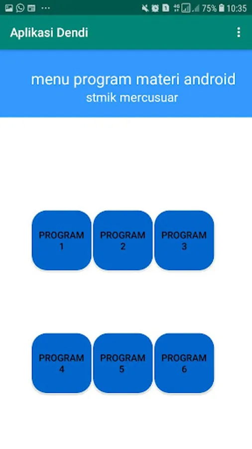 In this application contains education which consists of 6 programs, scrolingActivity program1, then program 2 is a google browser where we can access everything or information that we want. the next program is program 3 containing number calculators, here we can do the sums, the next program is program 4 which is the food order menu program here we can order food or toppings that have been listed in program 4, next is program 5 this program contains about the music player where we can listen to music in the program 5, besides that there is a program 6 that contains a follower that when we can access our social media program 6