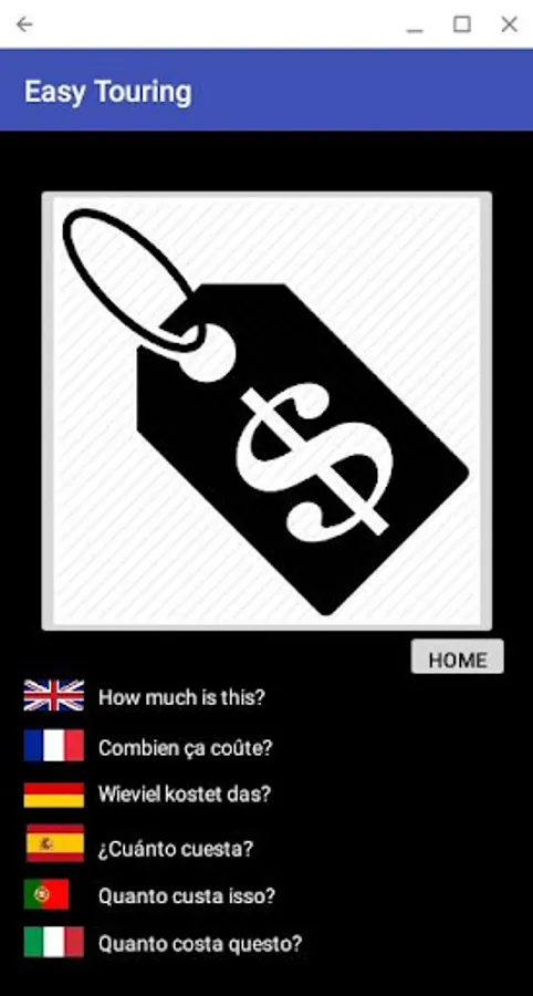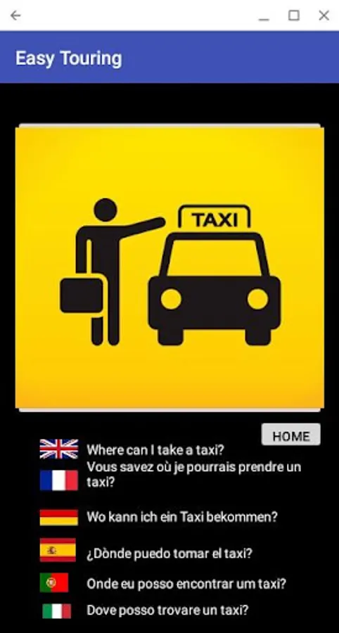 Easy Touring is a phrase app for tourists, accompanied by useful illustrations which represent typical situations for people who travels abroad.