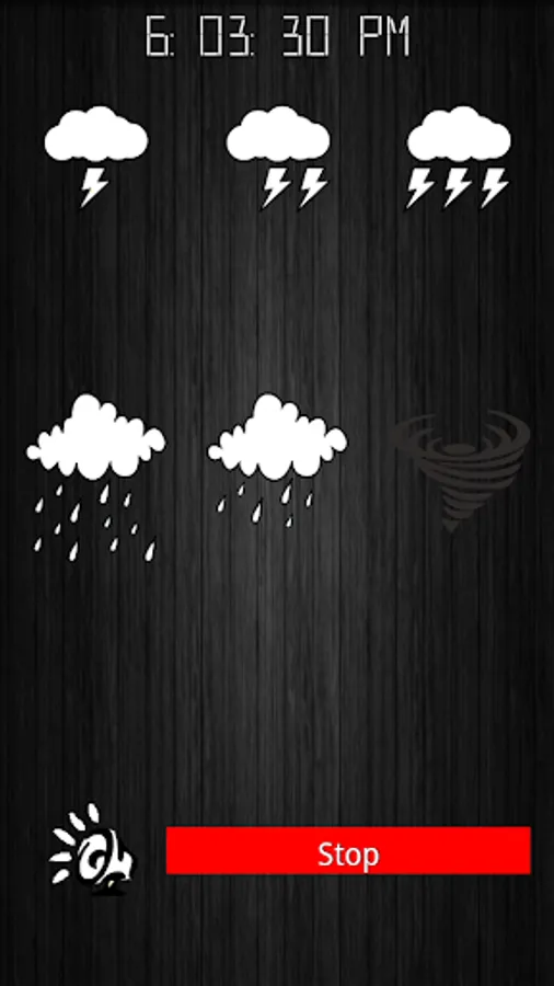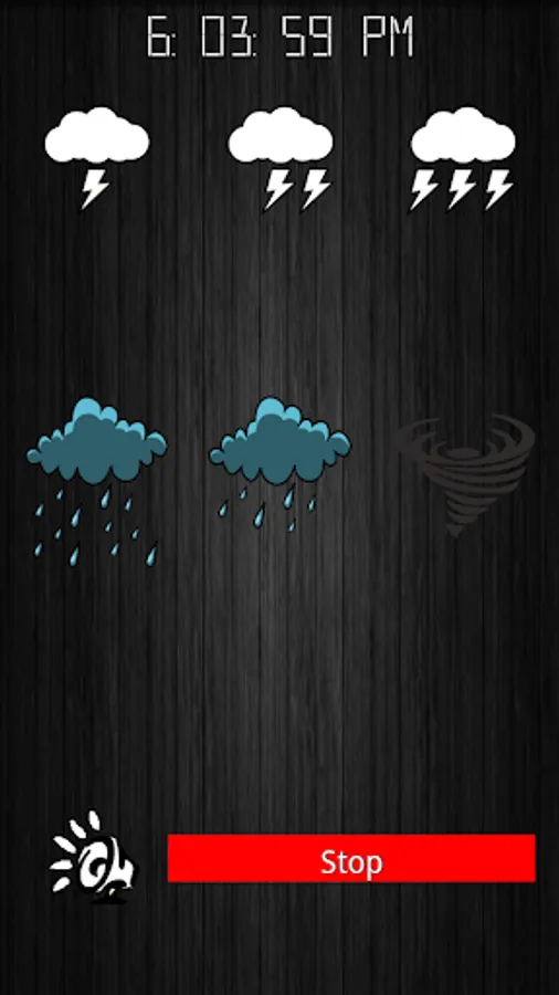 Plays sound continuously. Rain, Thunder, Fierce wind, Air Raid Siren and Light Rain.