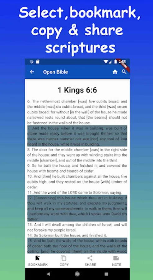 The King James bible app offline has beautiful scriptures and favorite bible verses which you can easily bookmark. It bring the entire bible scriptures and passages to the palm of your hand, and more importantly, it can be read and accessed completely offline.
