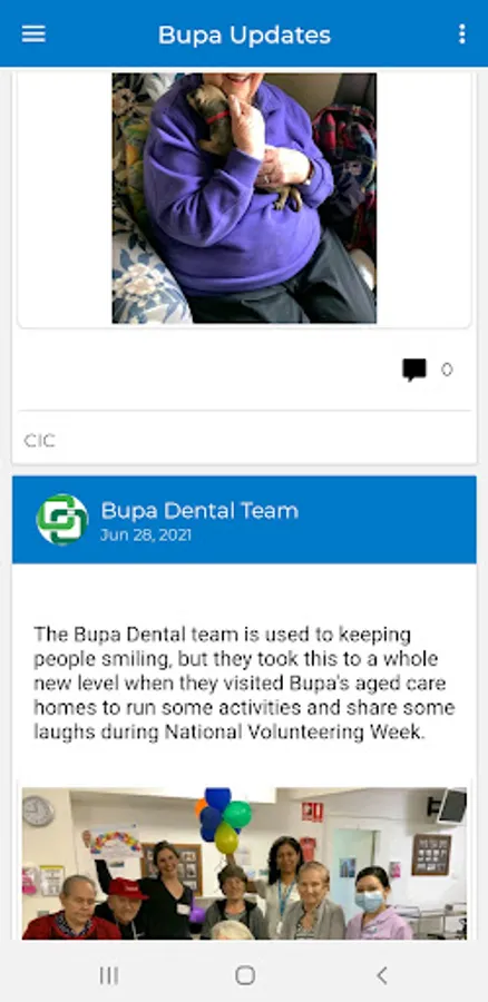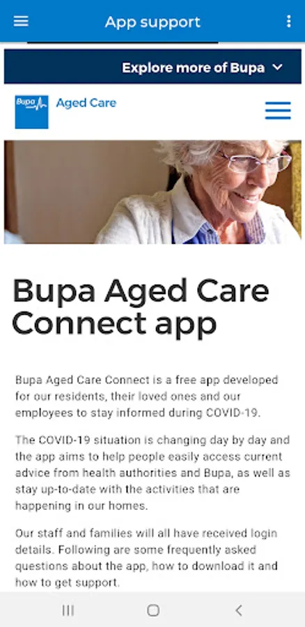* direct messages from Bupa Aged Care homes to families and employees