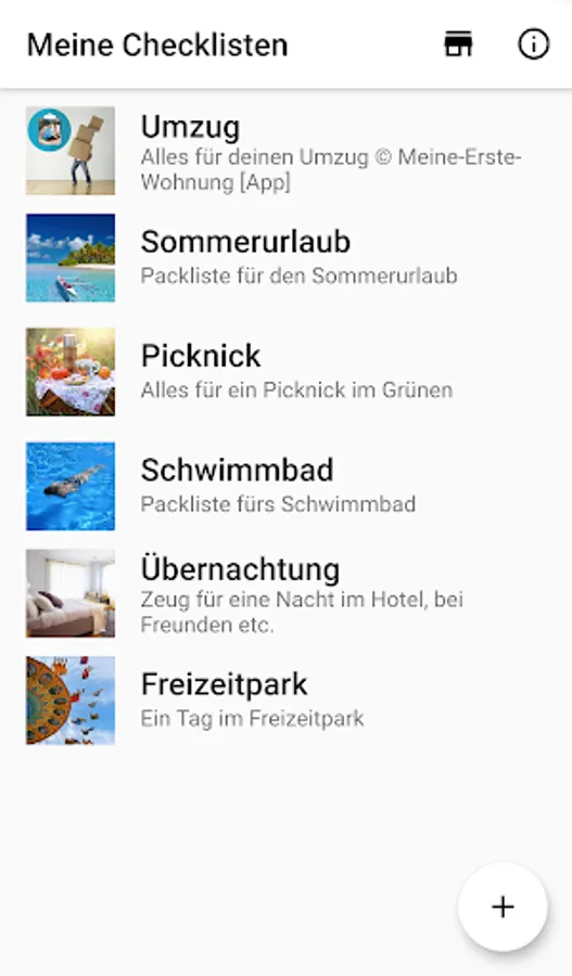 In contrast to other checklists or todo apps, we use pre-made lists that you can easily adapt to your needs. It includes compilations for trips, vacations, moving in, party planning, car maintenance, morning routine and many more. Of course you can also create your own lists.