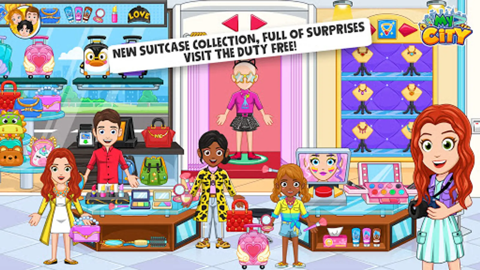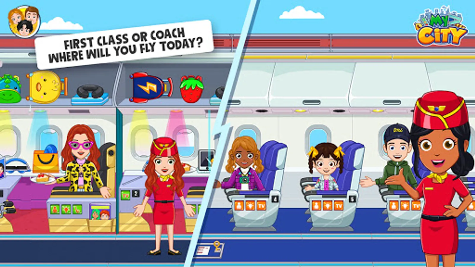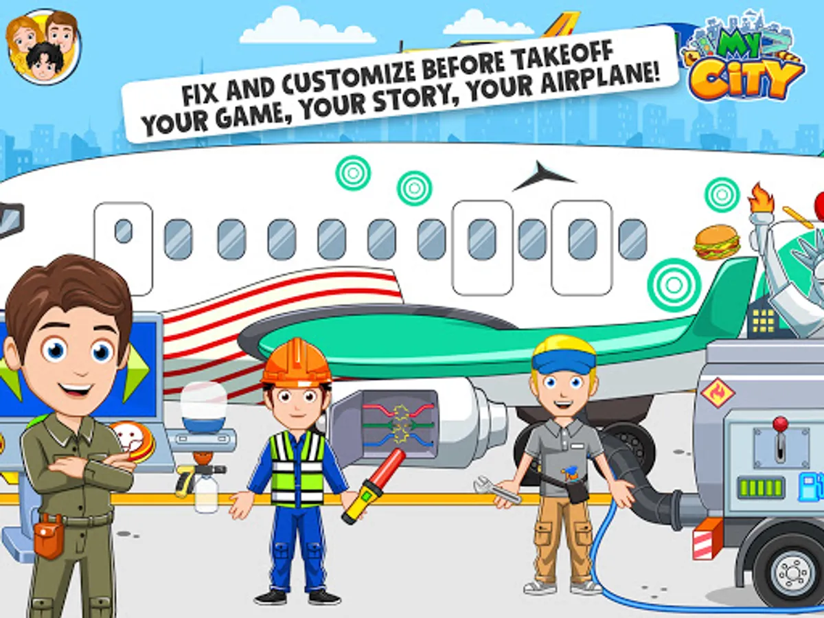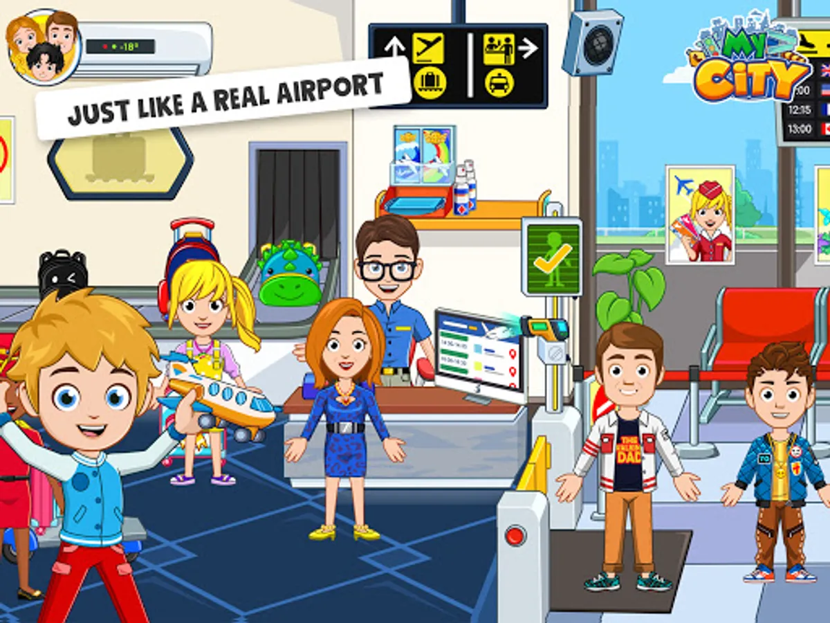 Welcome to My City : Airport. Just like a real airport with tons of stuff to play and discover. Get your boarding pass ready and check-in your luggage before you pass through security, visit the duty free and attend to travelers in the airplane. There is so much to do in this game every time you play it. My City : Airport lets you create your own stories and adventures, from preparing the airplane to take off to attending first class passengers. Be the captain of the flight or sit behind the control tower to make sure that all flights are on schedule! Adventure is all around the world but the fun starts with your imagination!