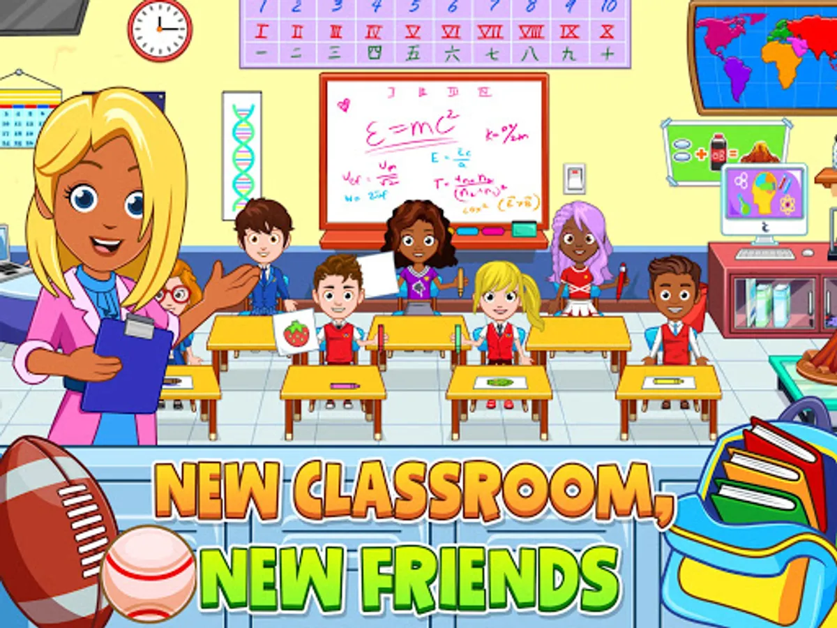 It's a school day in My City, how exciting! Get ready for another adventure where you can create your own stories, teach your own class, role-play in your very own school play and much much more! The school comes with 9 locations including Art and Science classrooms, New school friend characters you can use in all of our other My City games.